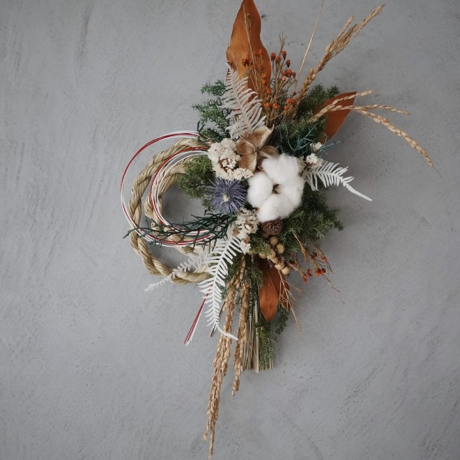 お正月前から飾れて、新年を迎えた後もインテリアとして楽しむ事ができる2wayしめ縄リース。